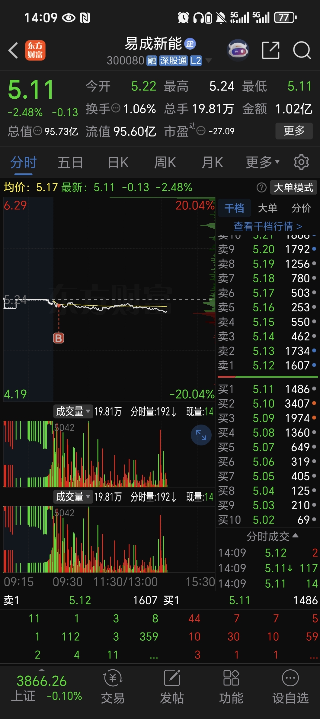 $易成新能(SZ300080)$ 再补4手,目前8手,下次就是8手,放5块买了