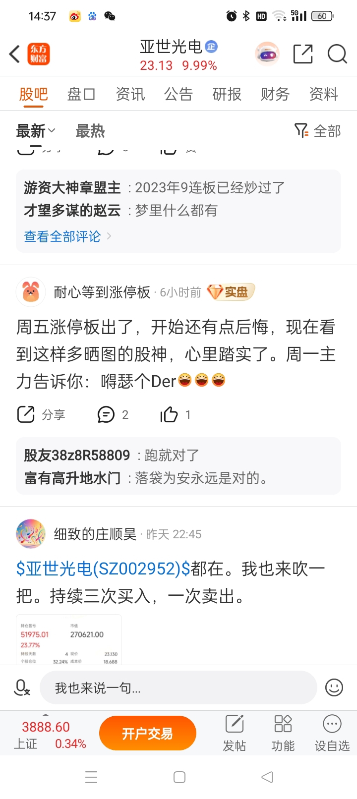 大家有空去亚世光电恶心唱多!让他们主力砸盘。让那只恶心唱多苍蝇也尝尝被人砸盘的滋