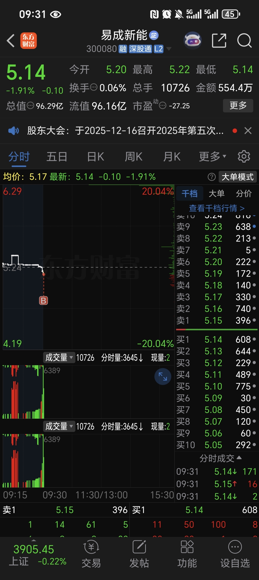 $易成新能(SZ300080)$ 买买买,加一手仓每日压制一下