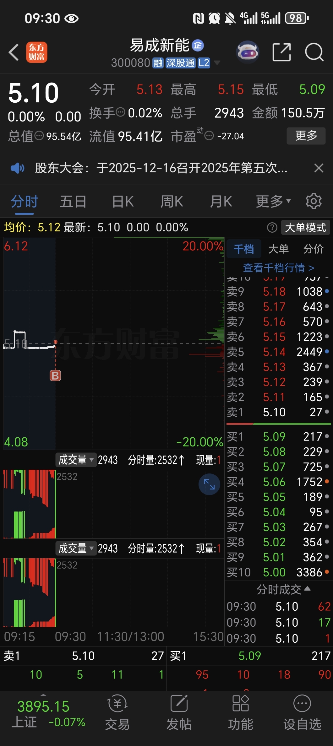$易成新能(SZ300080)$ 每日一手,直接压制
