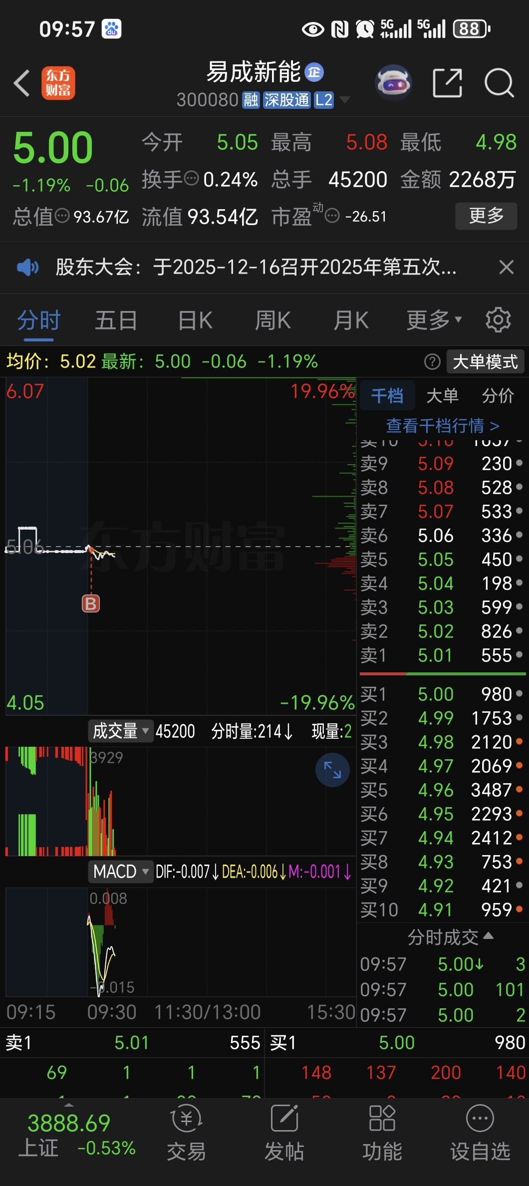 $易成新能(SZ300080)$ 每日压制,3手变4手,4.8加仓16手