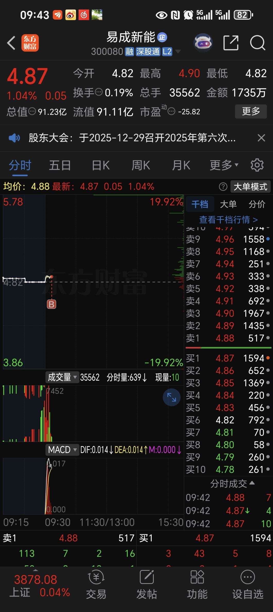 $易成新能(SZ300080)$ 每日压制,买入20手变240手,今天起来晚了买的慢了