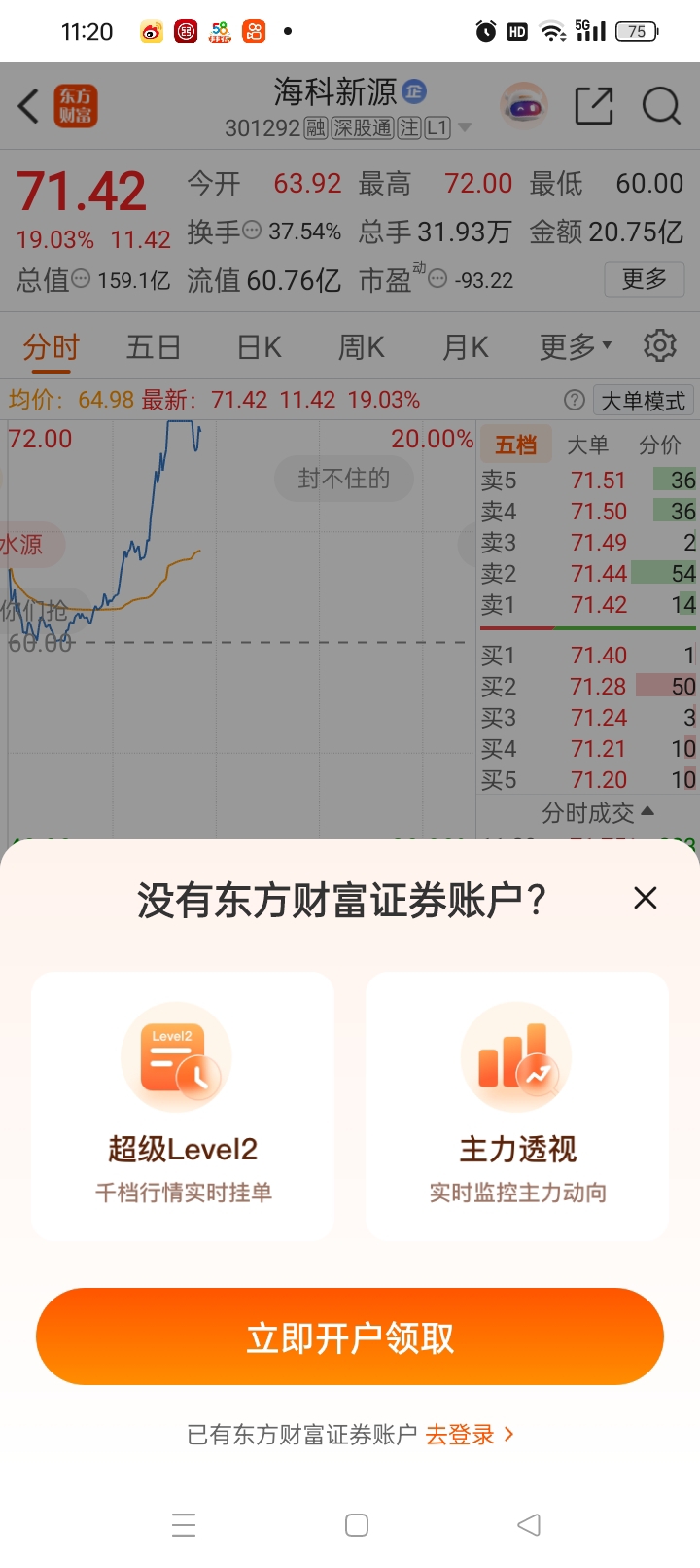 $易成新能(SZ300080)$ 加油啊!人家海科新能又板了
