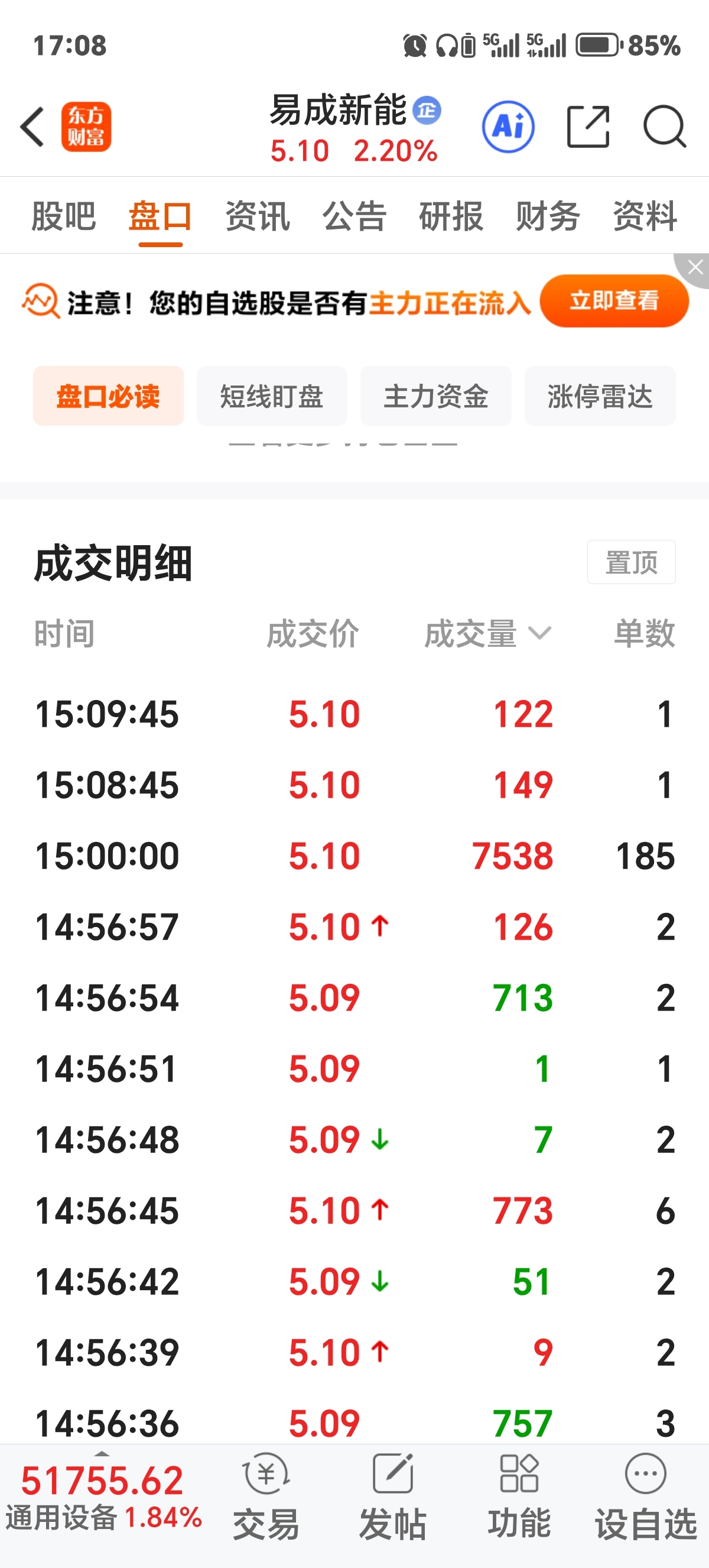 $易成新能(SZ300080)$ 15.08分15.09分。都能成交