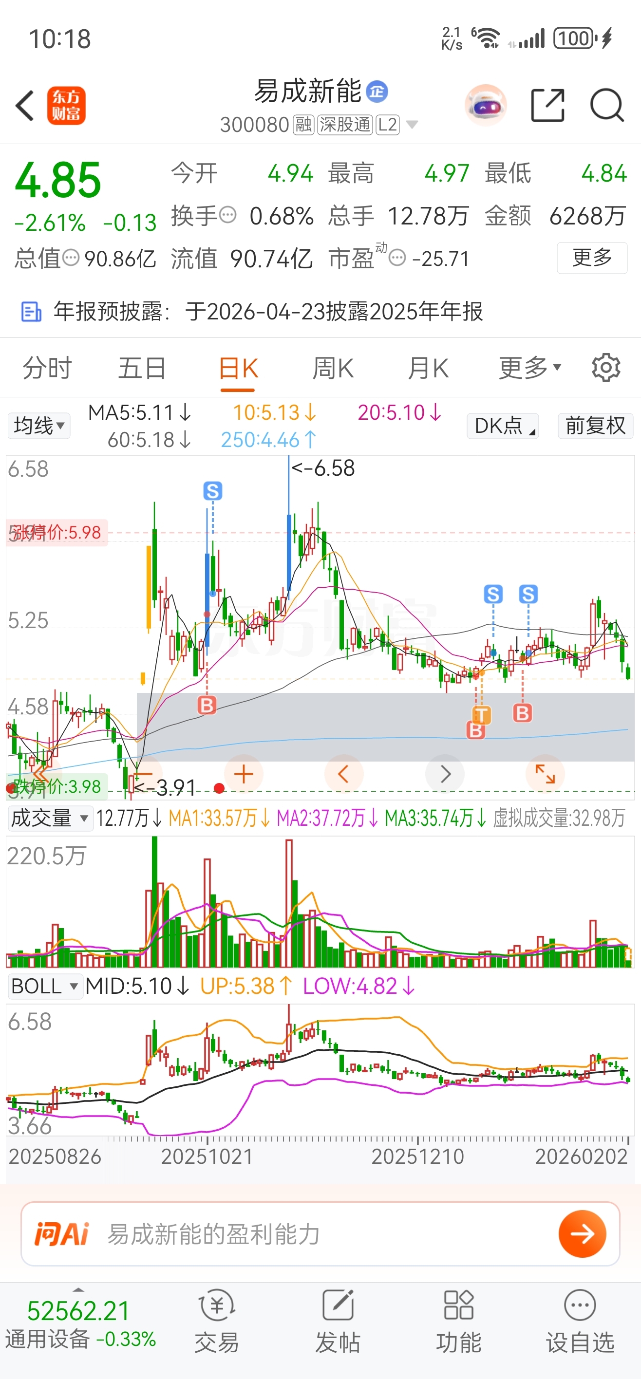 $易成新能(SZ300080)$ 每次在这里赚两三个点,明天跌到位再来。