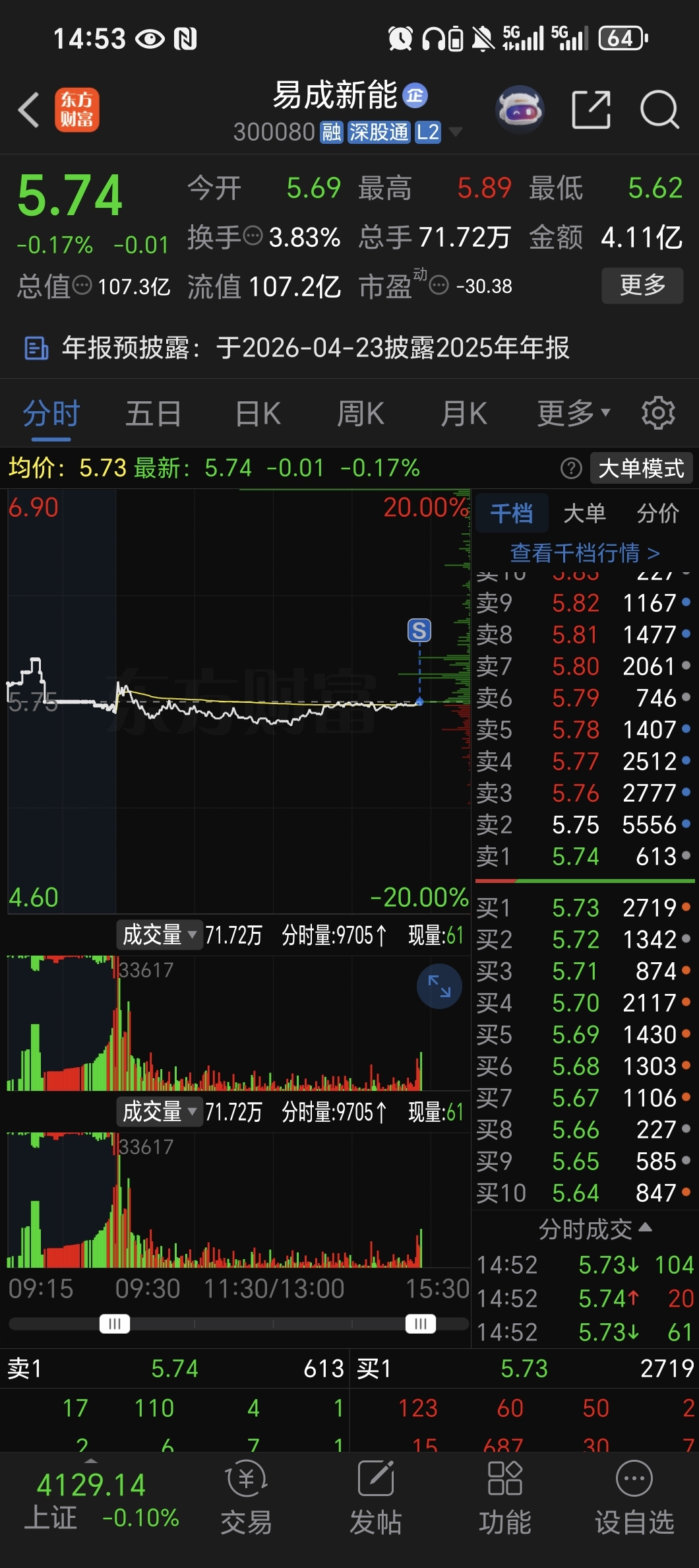 $易成新能(SZ300080)$ 早上没走太可惜了