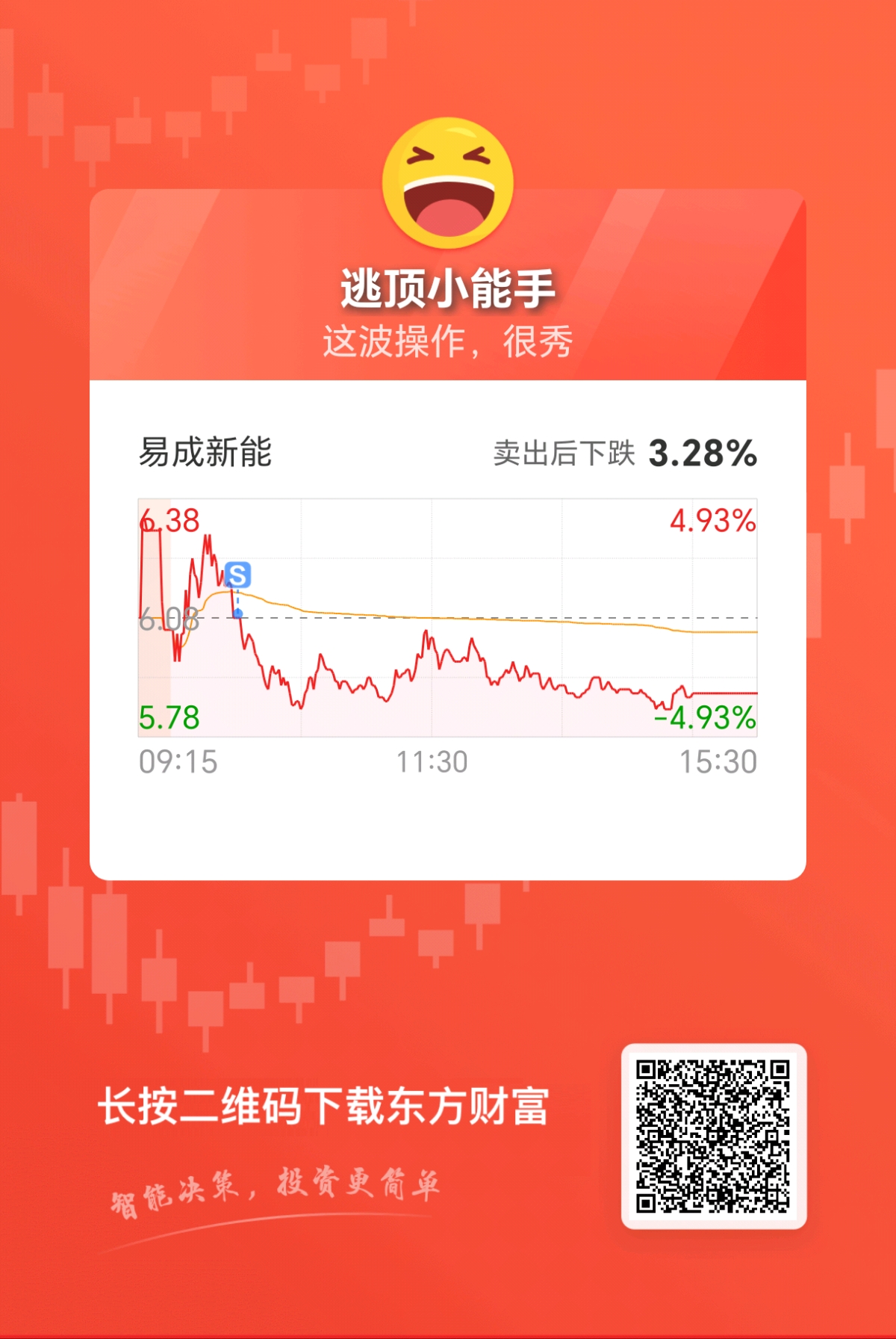 $易成新能(SZ300080)$ 逃个粑粑 早盘高位没抓紧出 大意了…
