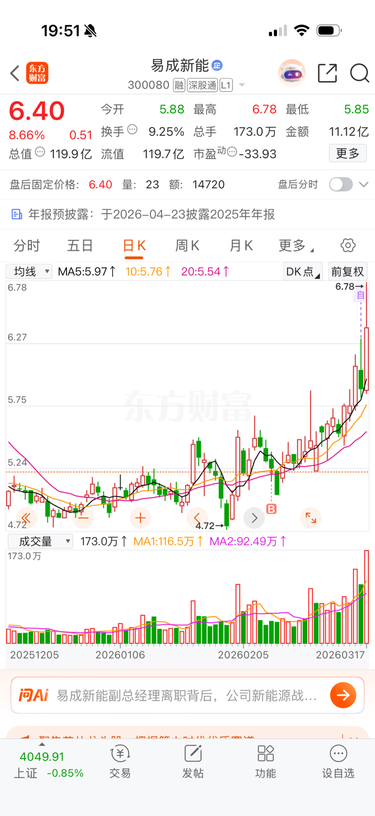 $易成新能(SZ300080)$