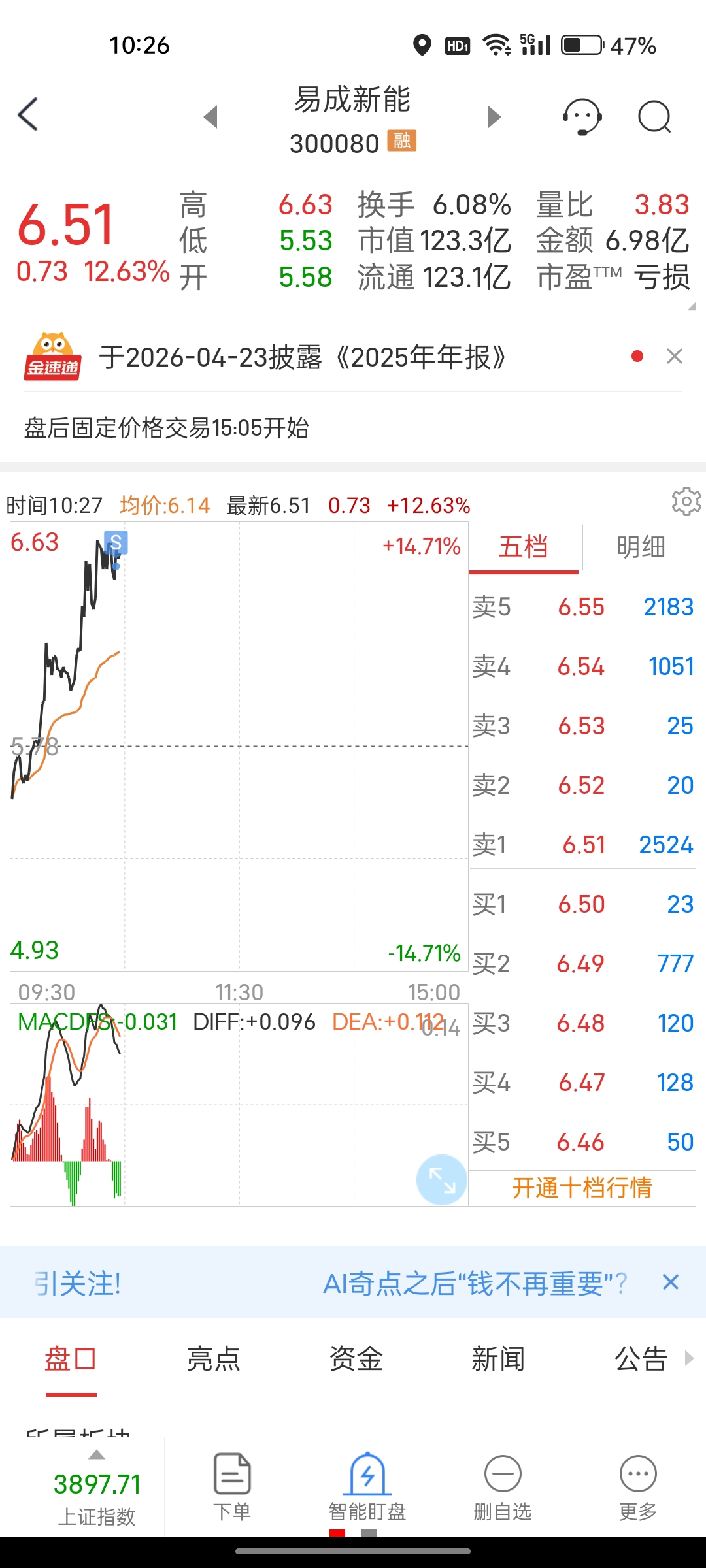 $易成新能(SZ300080)$ 走妳,不格局了。