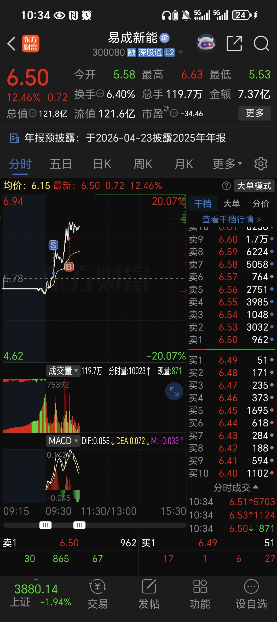 $易成新能(SZ300080)$ t飞了,瑟瑟发抖
