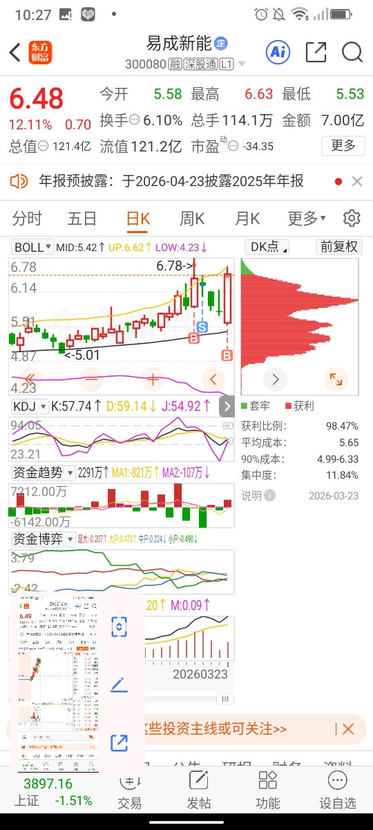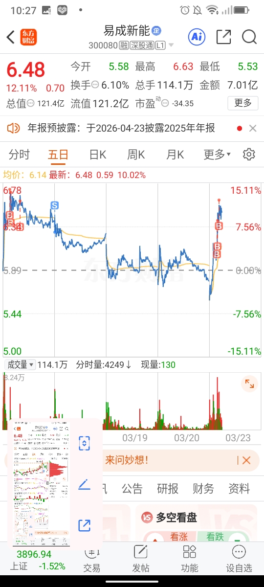 $易成新能(SZ300080)$  哈哈我胡汉三又回来了啊?感谢神。