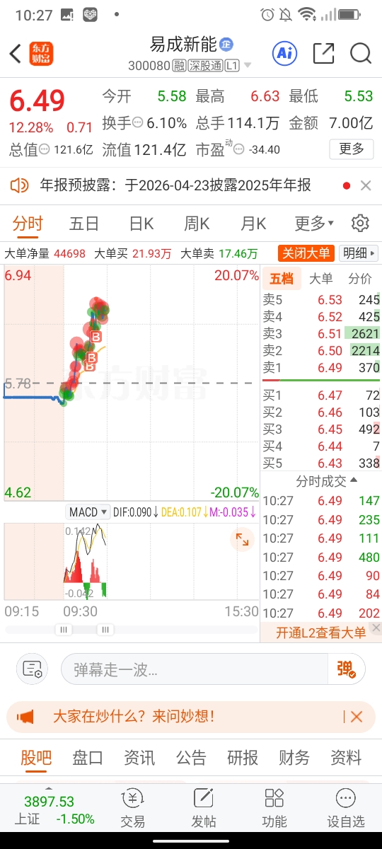 温馨提示: 1.根据《证券法》规定,禁止编造、传播虚假信息或者误导性信息,扰乱证券市场;2.用户在本社区发表的所有资料、言论等仅代表个人观点,与本网站立场无关,不对您构成任何投资建议。用户应基于自己的独立判断,自行决定证券投资并承担相应风险。《东方财富社区管理规定》