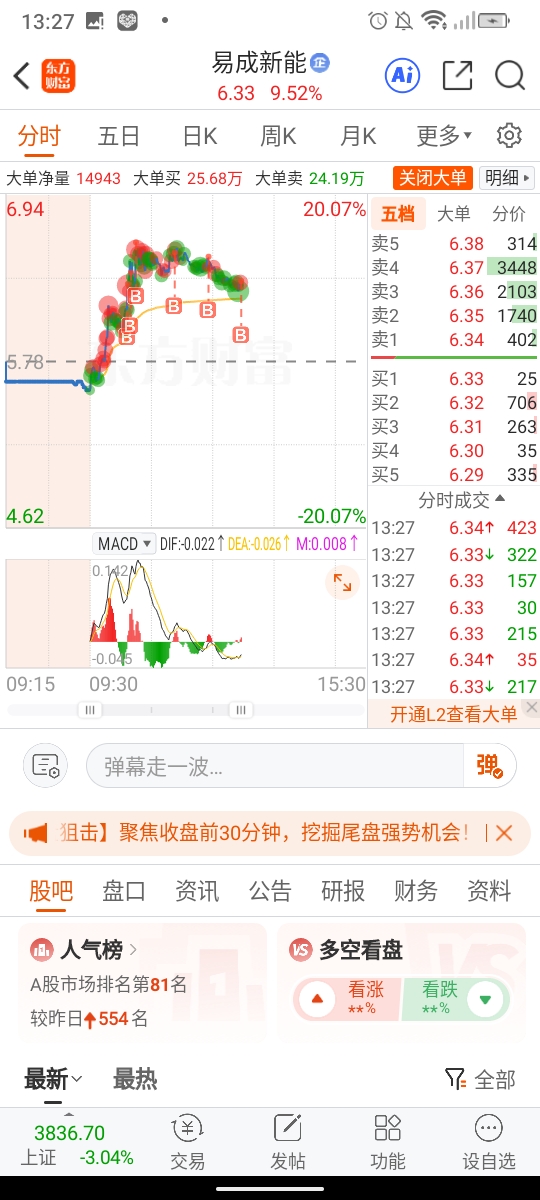 温馨提示: 1.根据《证券法》规定,禁止编造、传播虚假信息或者误导性信息,扰乱证券市场;2.用户在本社区发表的所有资料、言论等仅代表个人观点,与本网站立场无关,不对您构成任何投资建议。用户应基于自己的独立判断,自行决定证券投资并承担相应风险。《东方财富社区管理规定》