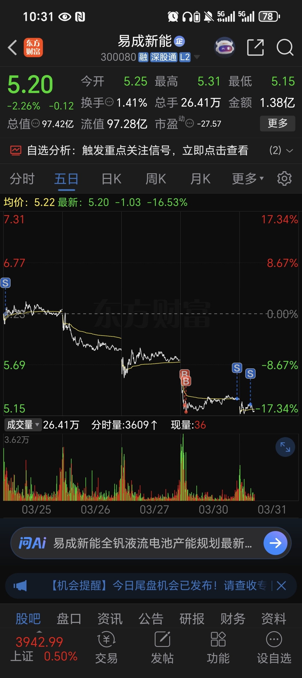 $易成新能(SZ300080)$