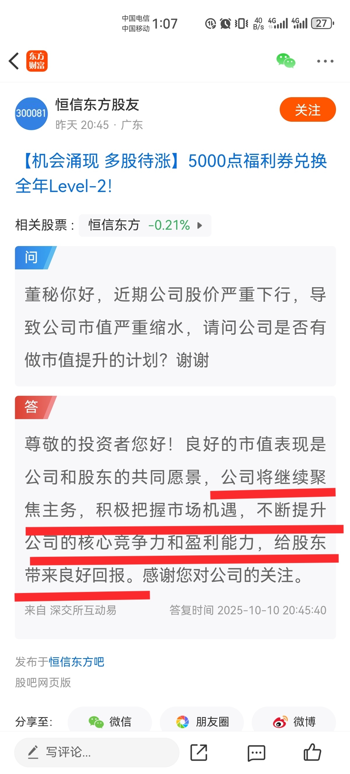 温馨提示: 1.根据《证券法》规定,禁止编造、传播虚假信息或者误导性信息,扰乱证券市场;2.用户在本社区发表的所有资料、言论等仅代表个人观点,与本网站立场无关,不对您构成任何投资建议。用户应基于自己的独立判断,自行决定证券投资并承担相应风险。《东方财富社区管理规定》