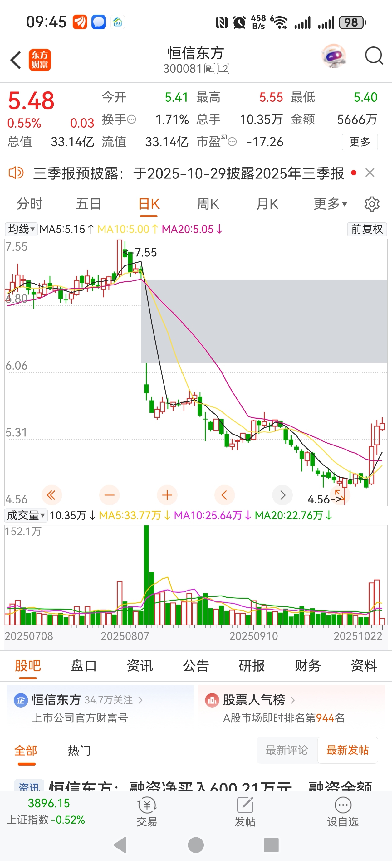 $恒信东方(SZ300081)$ K 线形态已经成了,为啥还有人说要卖?