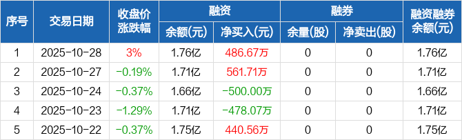 恒信东方:融资净买入486.67万元,融资余额1.76亿元(10-28)