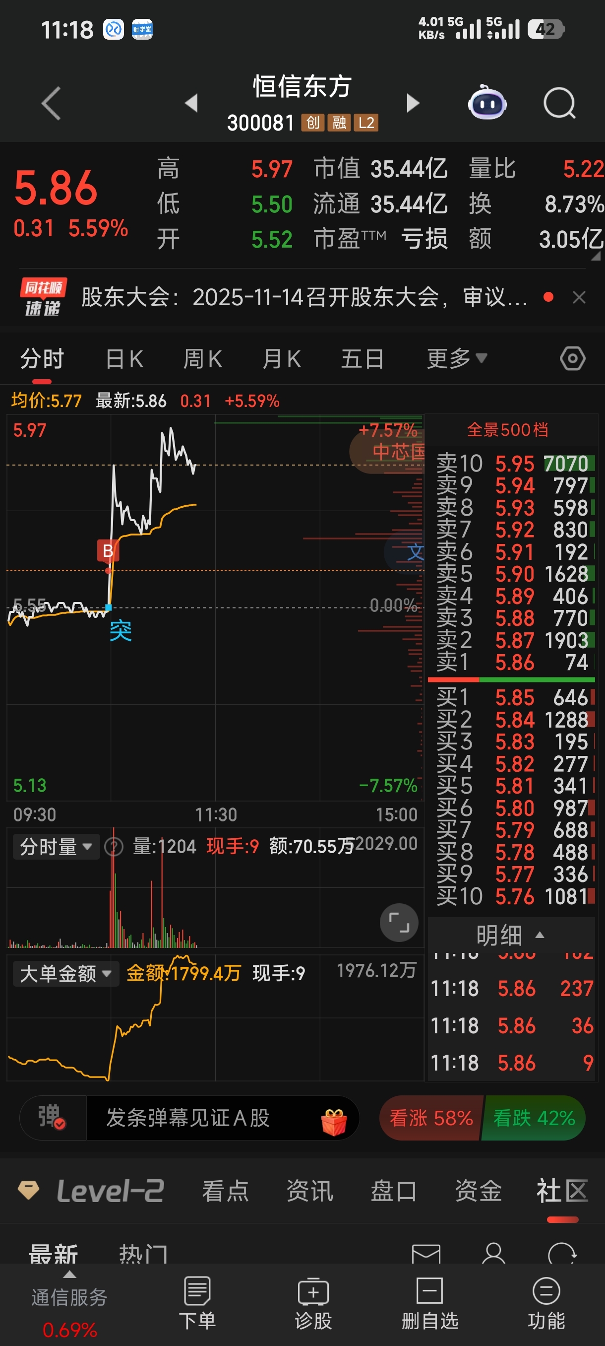 $恒信东方(SZ300081)$ 老龙日出东方起来,你是唯一福建东方,跟着中富通冲一冲