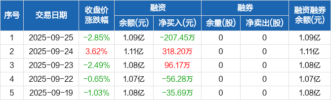 奥克股份:融资净偿还207.45万元,融资余额1.09亿元(09-25)