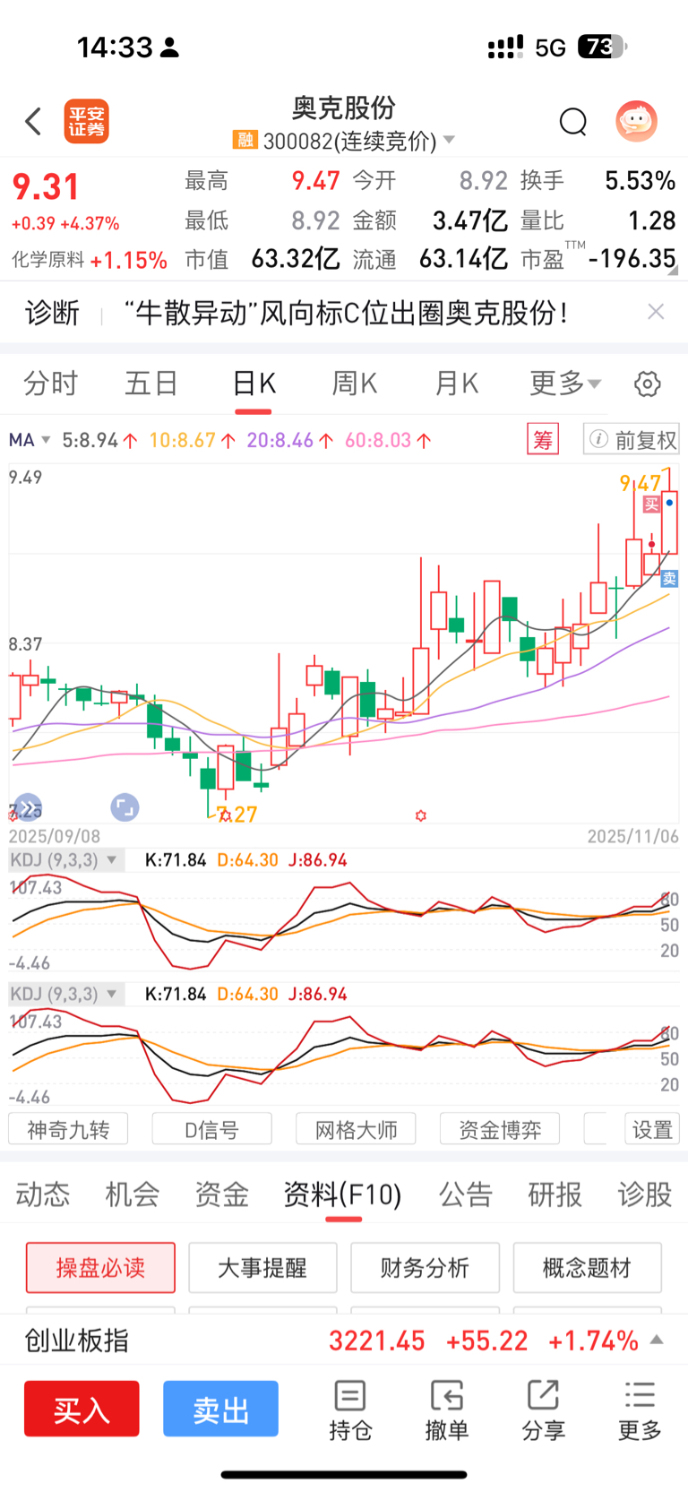 $奥克股份(SZ300082)$ 有肉就行,明天低点接回来