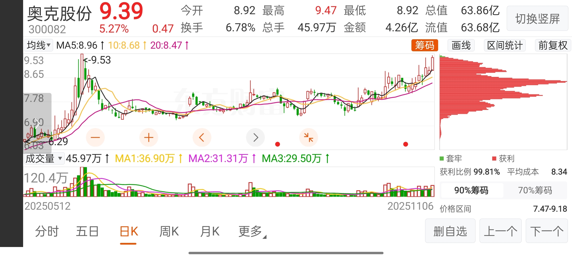 $奥克股份(SZ300082)$ 假突破明天跌听…低开5个点…