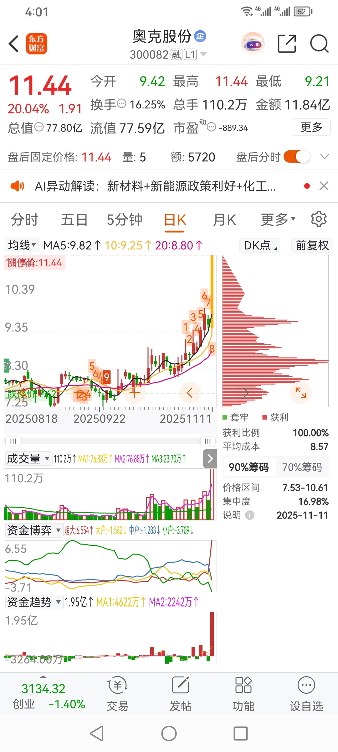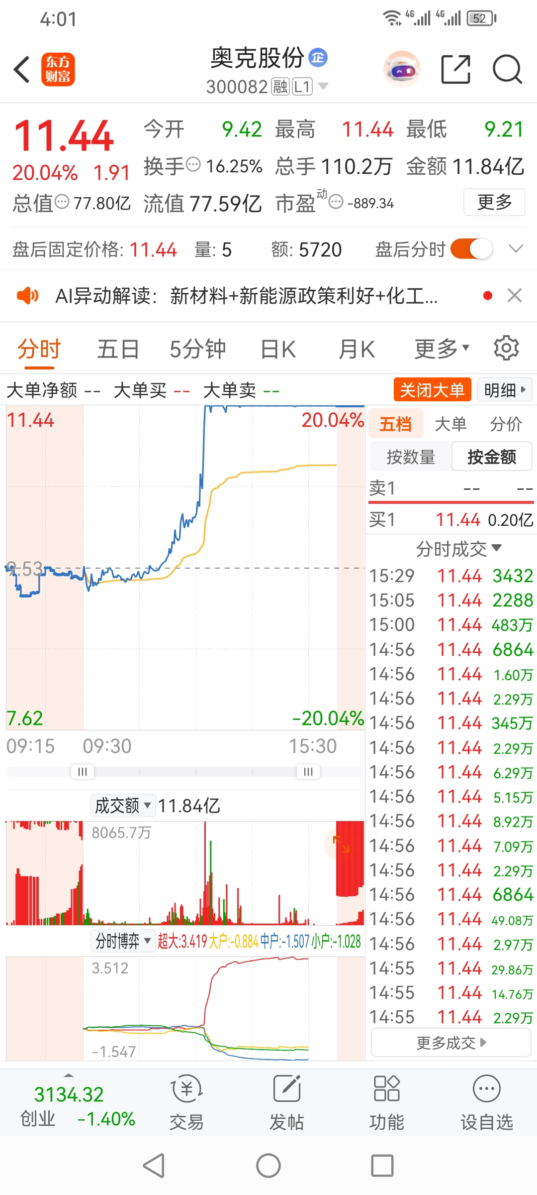 方军,奥克股份涨停,试错,买进,加仓。