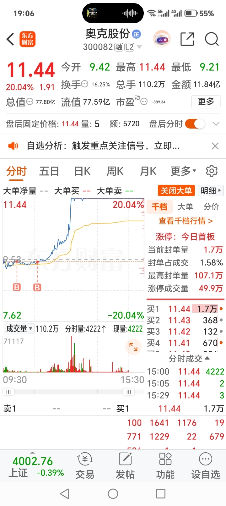 $奥克股份(SZ300082)$ 好想今天卖出去,就是不行啊