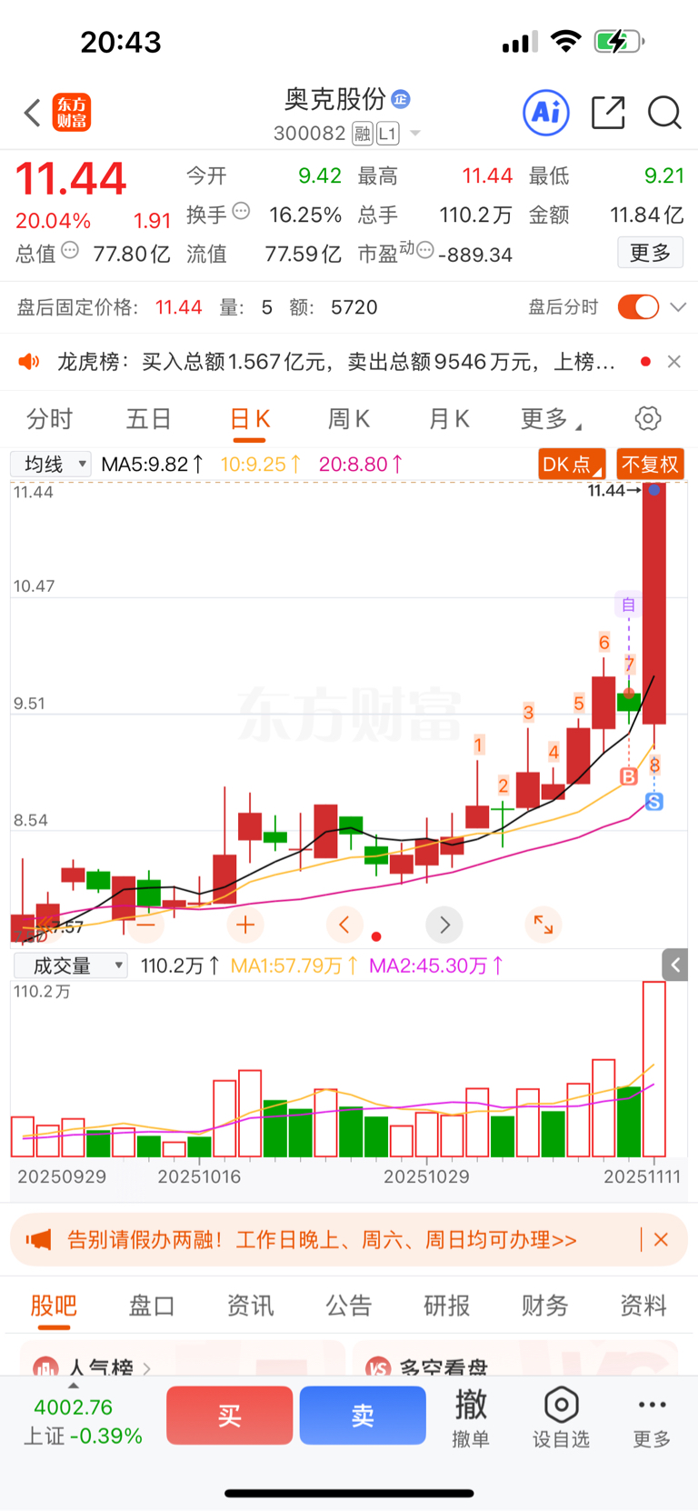 $奥克股份(SZ300082)$ 炸板给我洗跑了