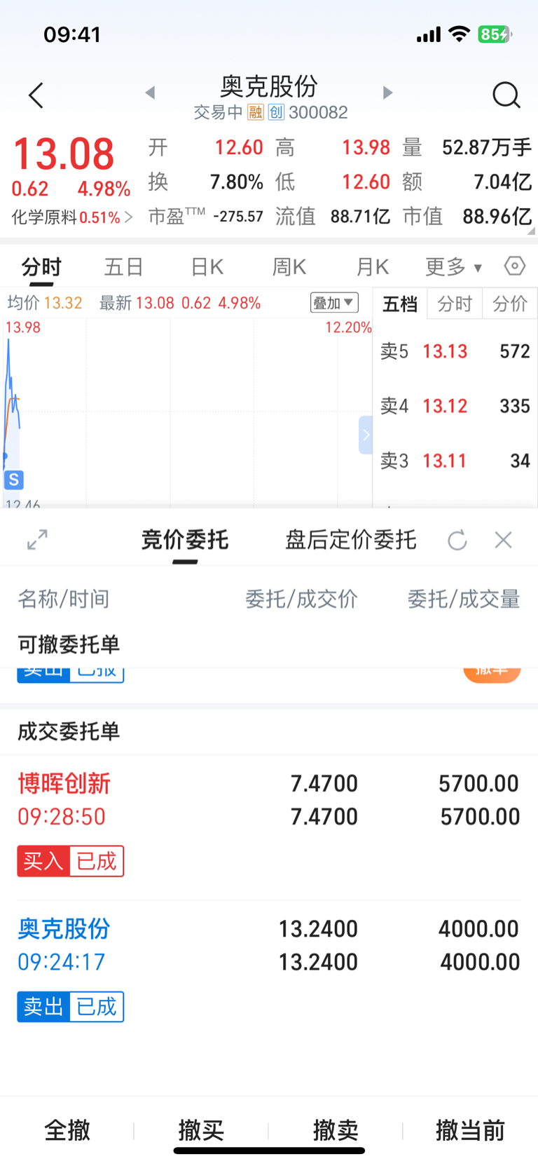 $奥克股份(SZ300082)$ 盘前砸到水下,直接挂了13.24,果然卖飞了