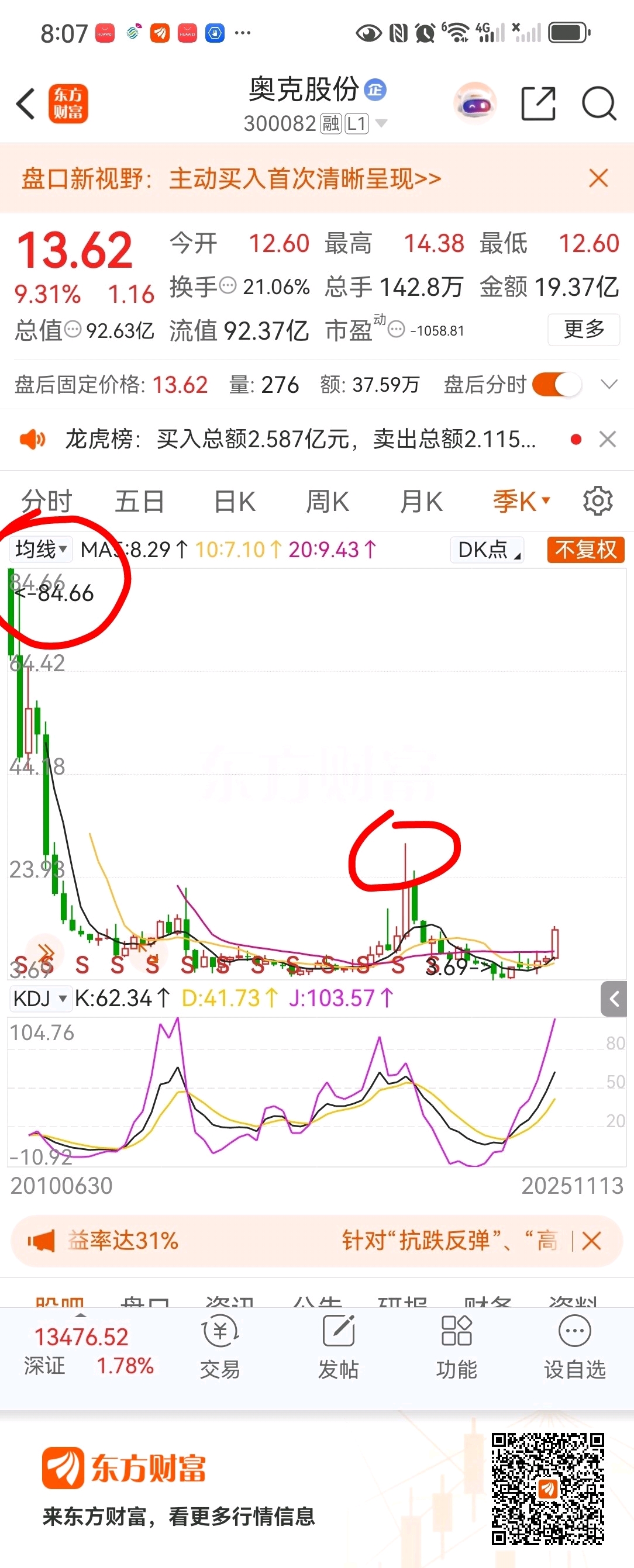 我的天呀奥克历史高位是从86块/股!跌了几年剩下今天可怜的13.62元/股。太狠
