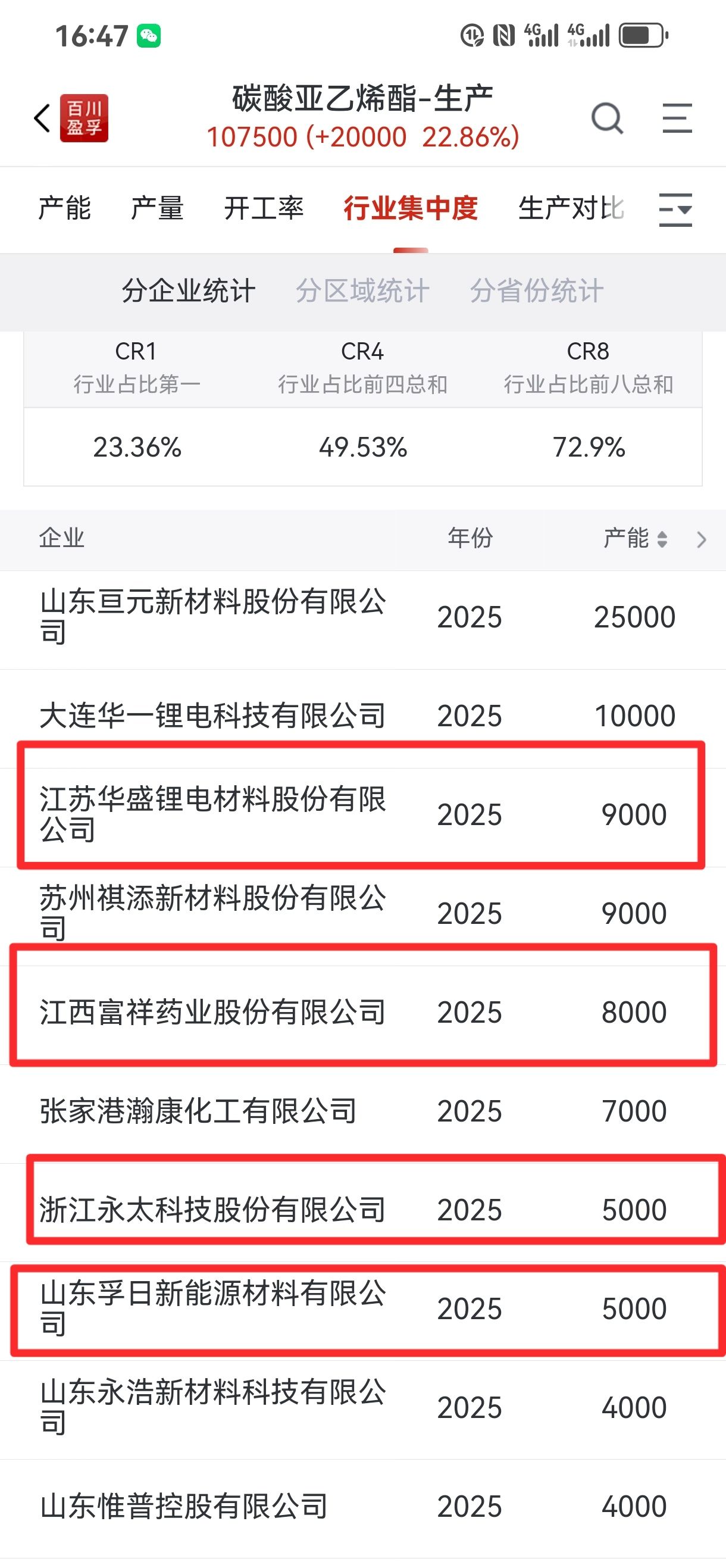 百川盈孚VC产能排行,华盛9000吨,富祥8000吨,永太,孚日各5000吨,下