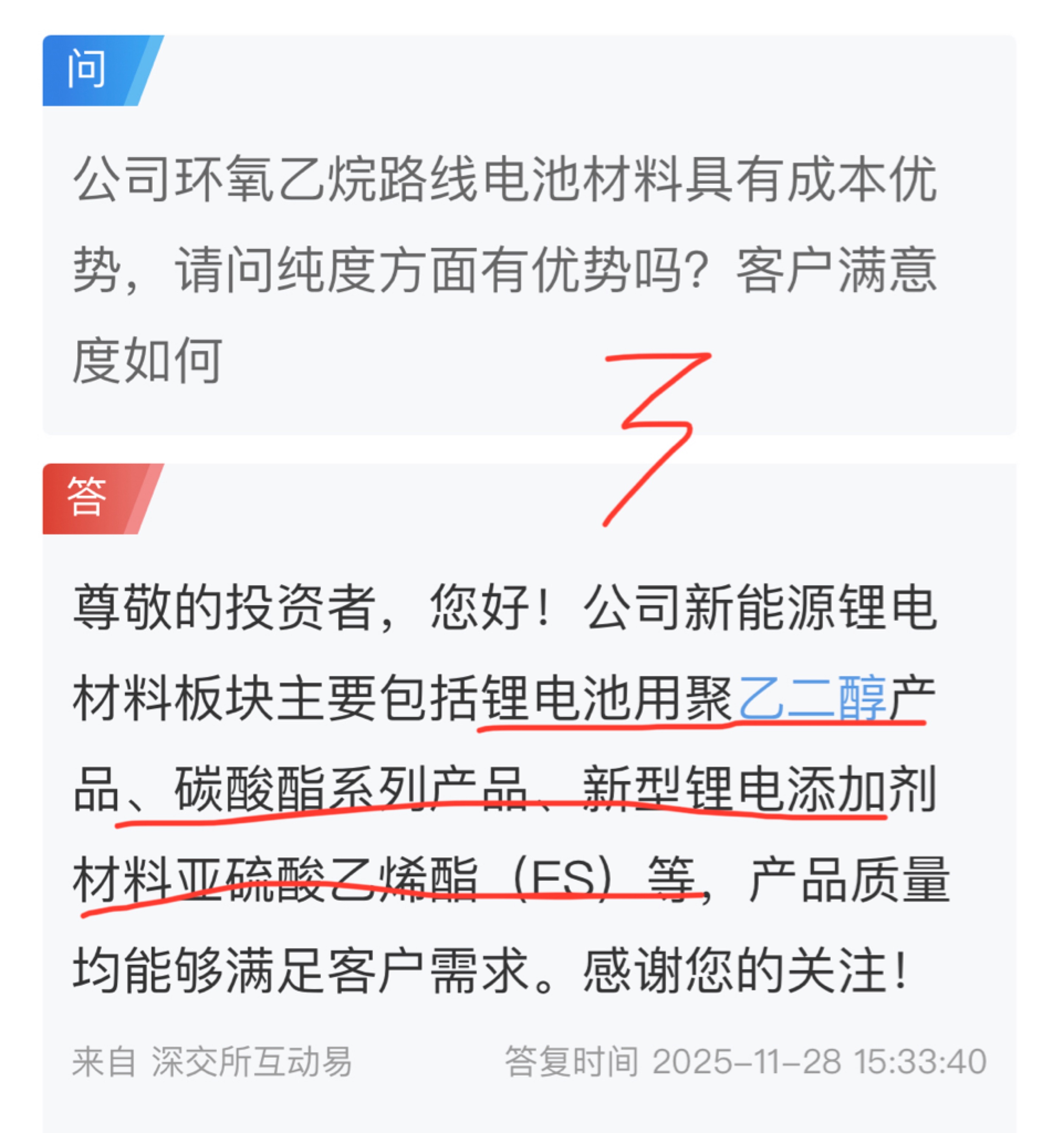 1.图一罕见没有否认,电池级聚乙二醇现在奥克是寡头市场,固态电池突破全系于此。