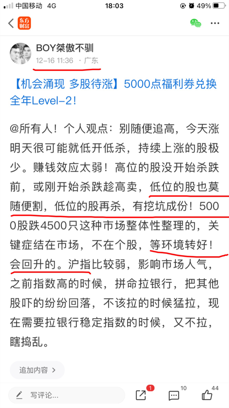 温馨提示: 1.根据《证券法》规定,禁止编造、传播虚假信息或者误导性信息,扰乱证券市场;2.用户在本社区发表的所有资料、言论等仅代表个人观点,与本网站立场无关,不对您构成任何投资建议。用户应基于自己的独立判断,自行决定证券投资并承担相应风险。《东方财富社区管理规定》