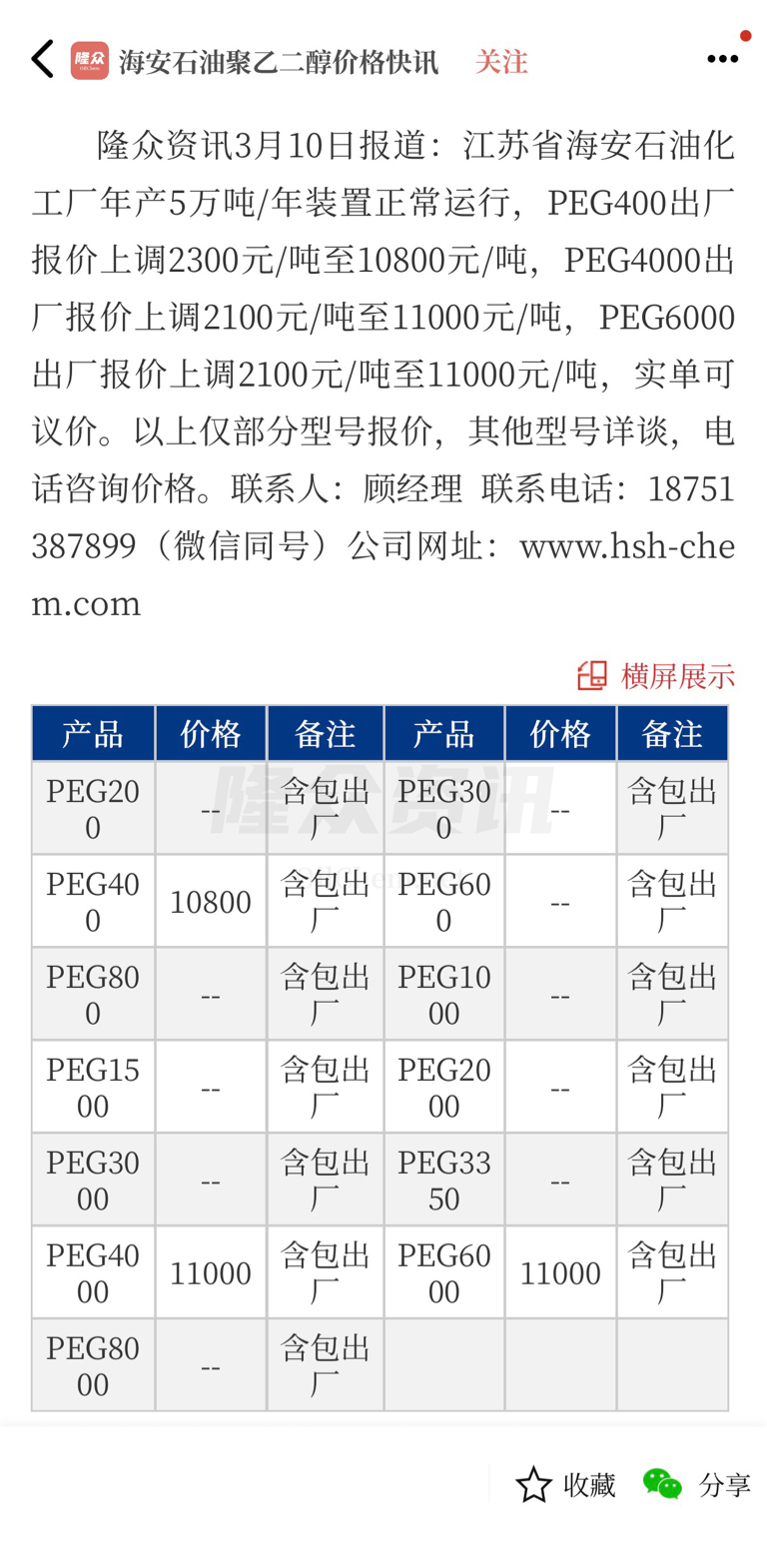 $奥克股份(SZ300082)$ 3月11日,环氧乙烷由7400元/吨上涨至7700元/吨,当日涨幅4.1%,本月涨幅40%。PEG聚乙二醇今日上涨2100元/吨,较昨日涨幅26.25%。
