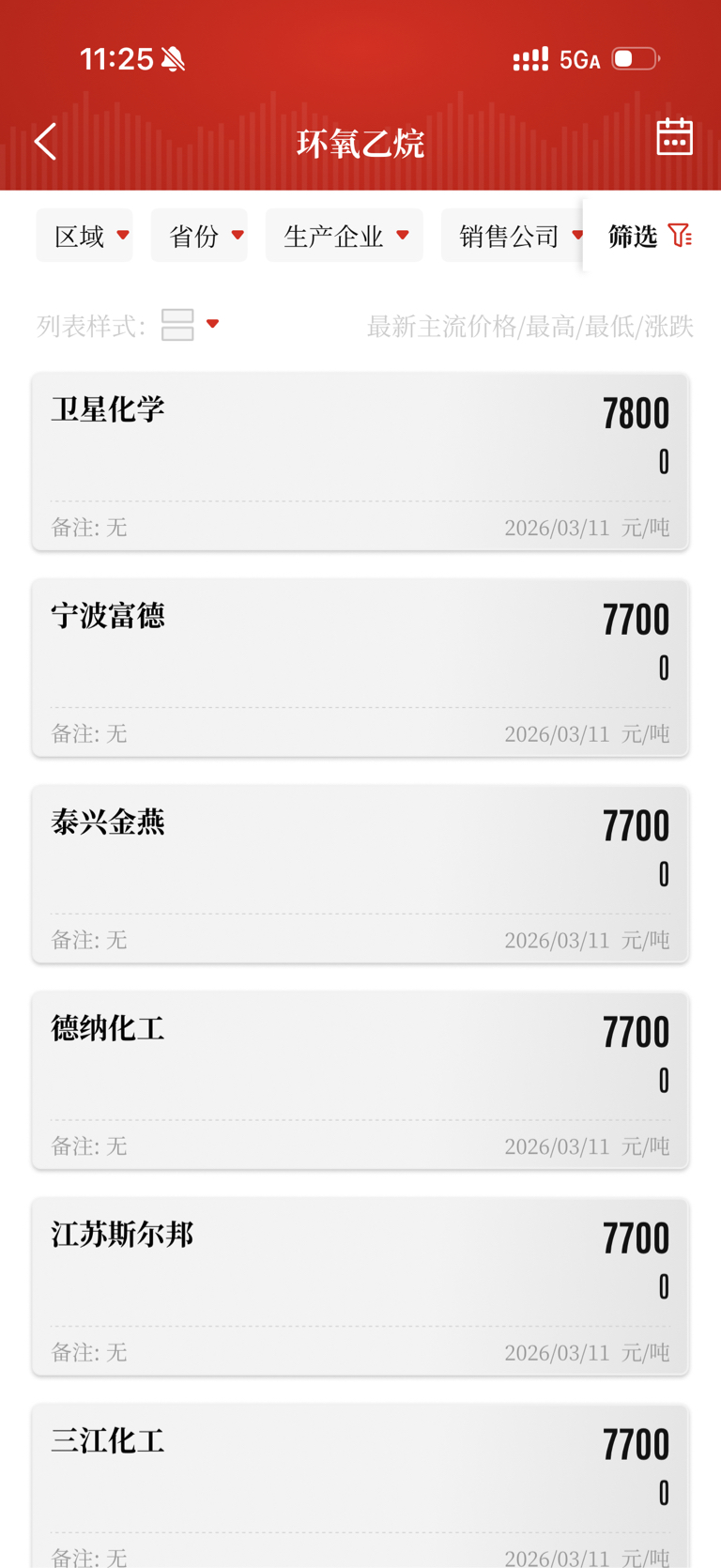 3月11日,环氧乙烷由7400元/吨上涨至7700元/吨,当日涨幅4.1%,本月