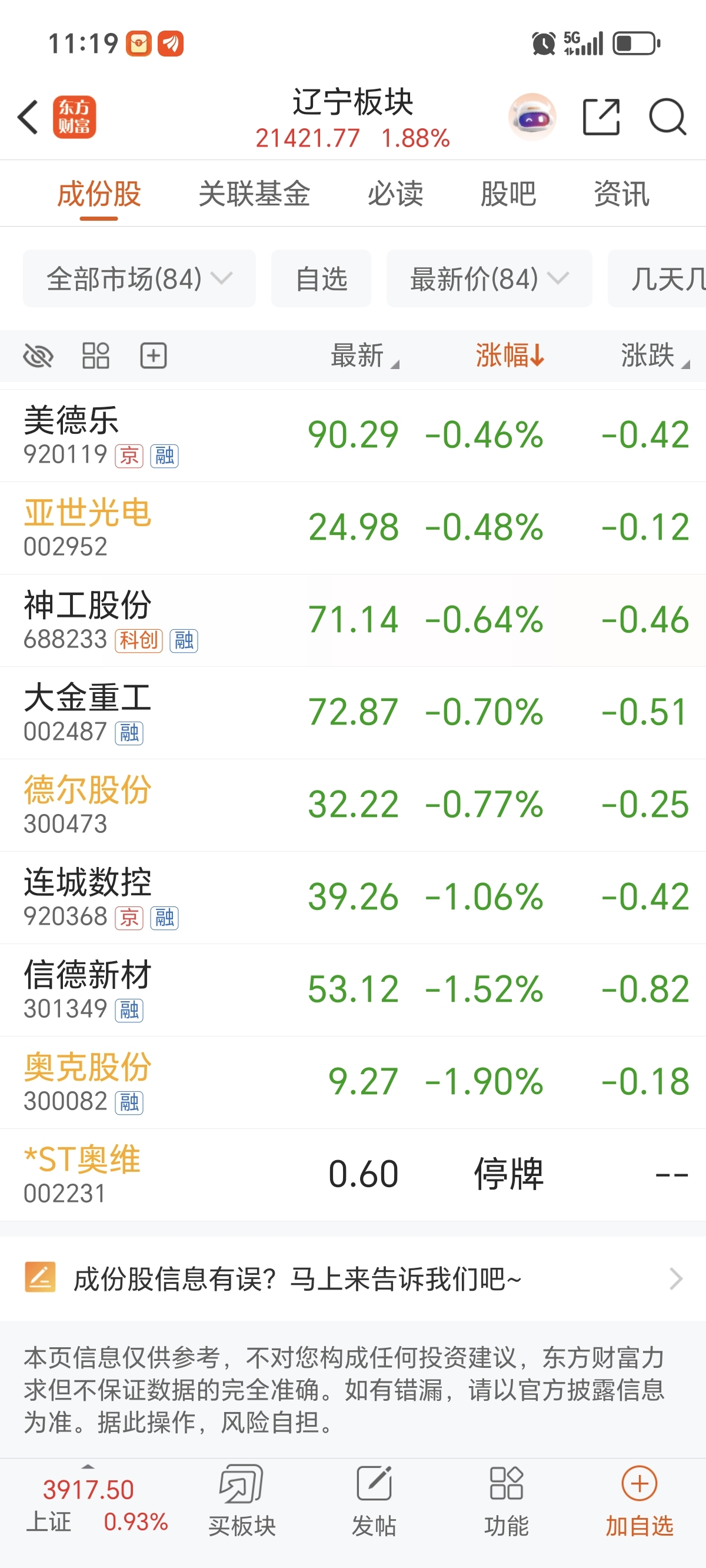 $奥克股份(SZ300082)$ 除了一个退市的奥维,奥克辽宁板块倒数第一
