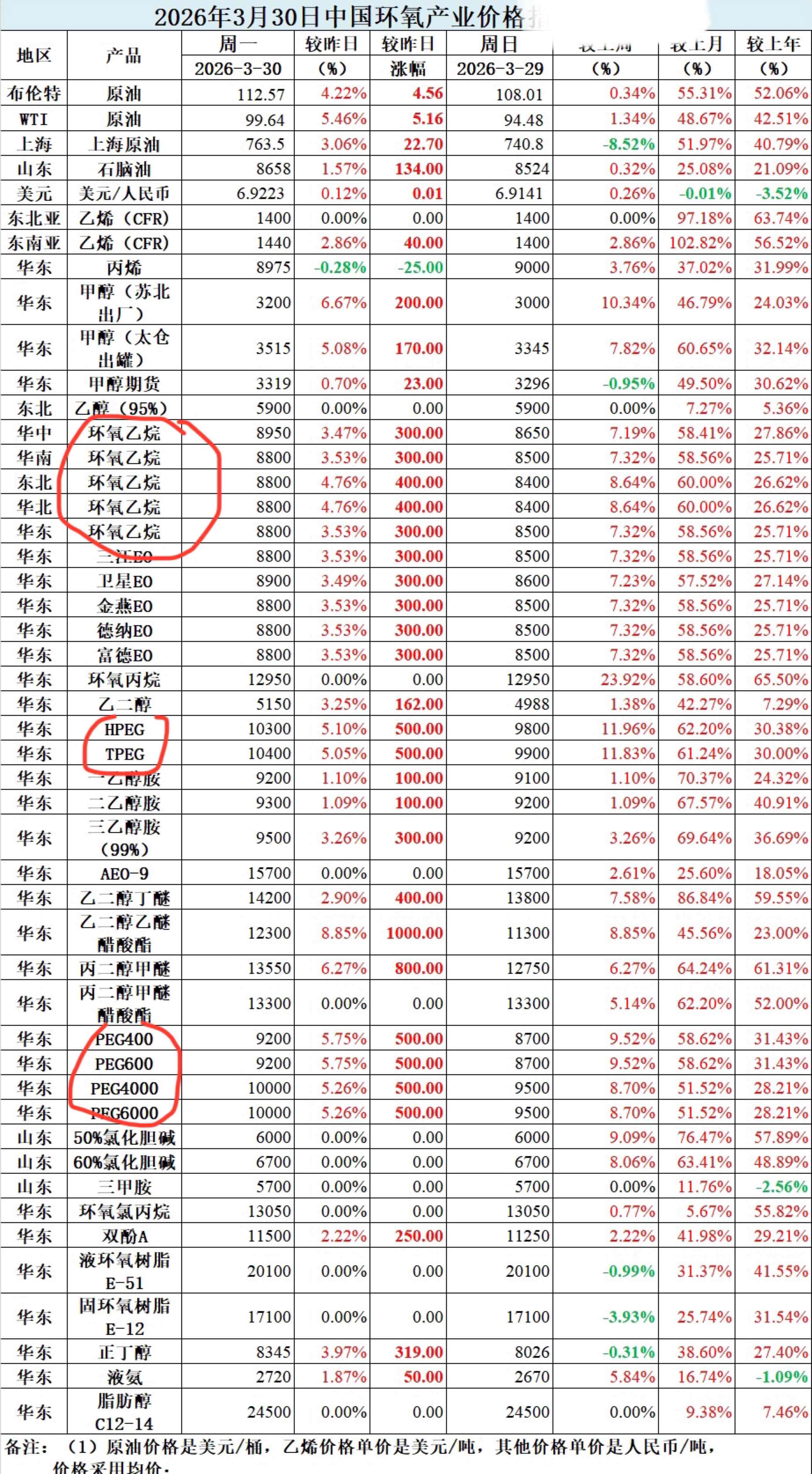 今日奥克主要产品聚醚单体、环氧乙烷、聚乙二醇疯彪了…