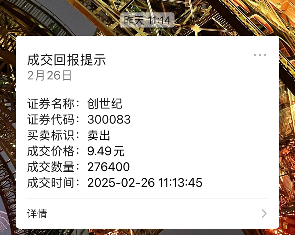 $创世纪(SZ300083)$ 昨天低于涨停三分出了,后面大单封住了,我还以为出错了呢,今天一看,真是庆幸啊,哈哈哈哈