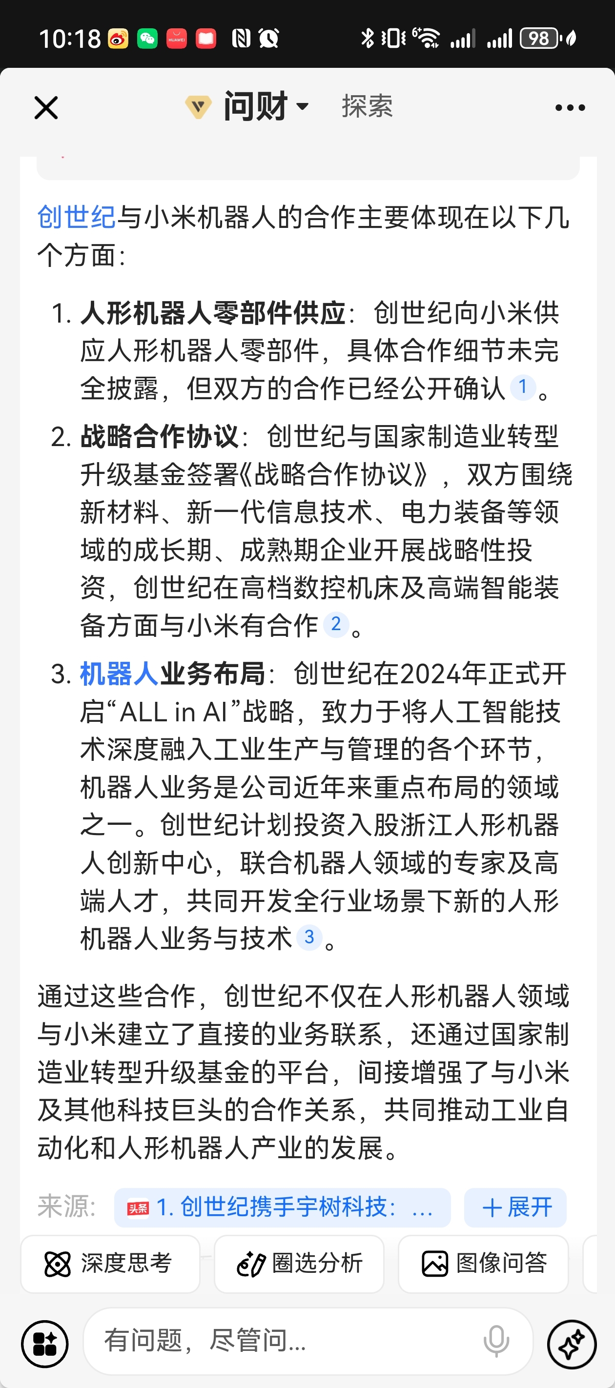 创世纪与小米机器人合作(问财回答)