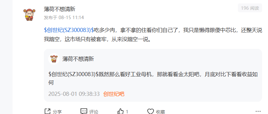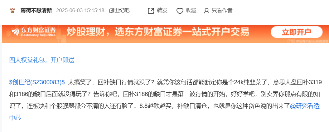 温馨提示: 1.根据《证券法》规定,禁止编造、传播虚假信息或者误导性信息,扰乱证券市场;2.用户在本社区发表的所有资料、言论等仅代表个人观点,与本网站立场无关,不对您构成任何投资建议。用户应基于自己的独立判断,自行决定证券投资并承担相应风险。《东方财富社区管理规定》