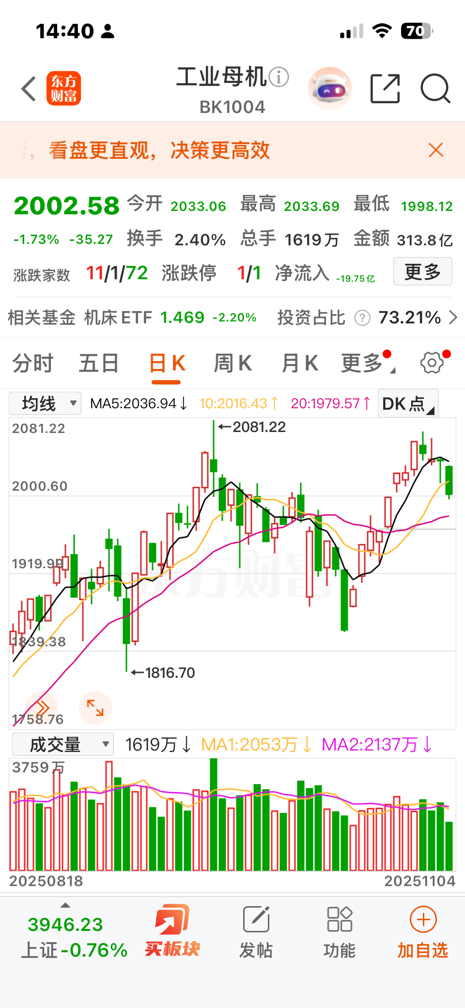 今天这走势三大盘连续4天大幅回落,工业母机题材指数也大幅回落,难道创世纪会走好吗