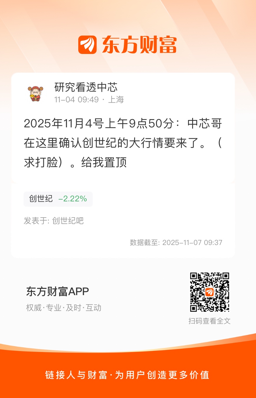 2025年11月4号上午9点50分:中芯哥在这里确认创世纪的大行情要来了。(求打脸)。给我置顶