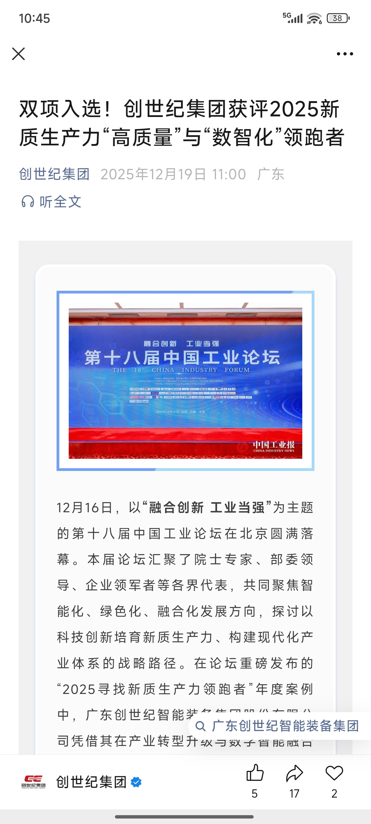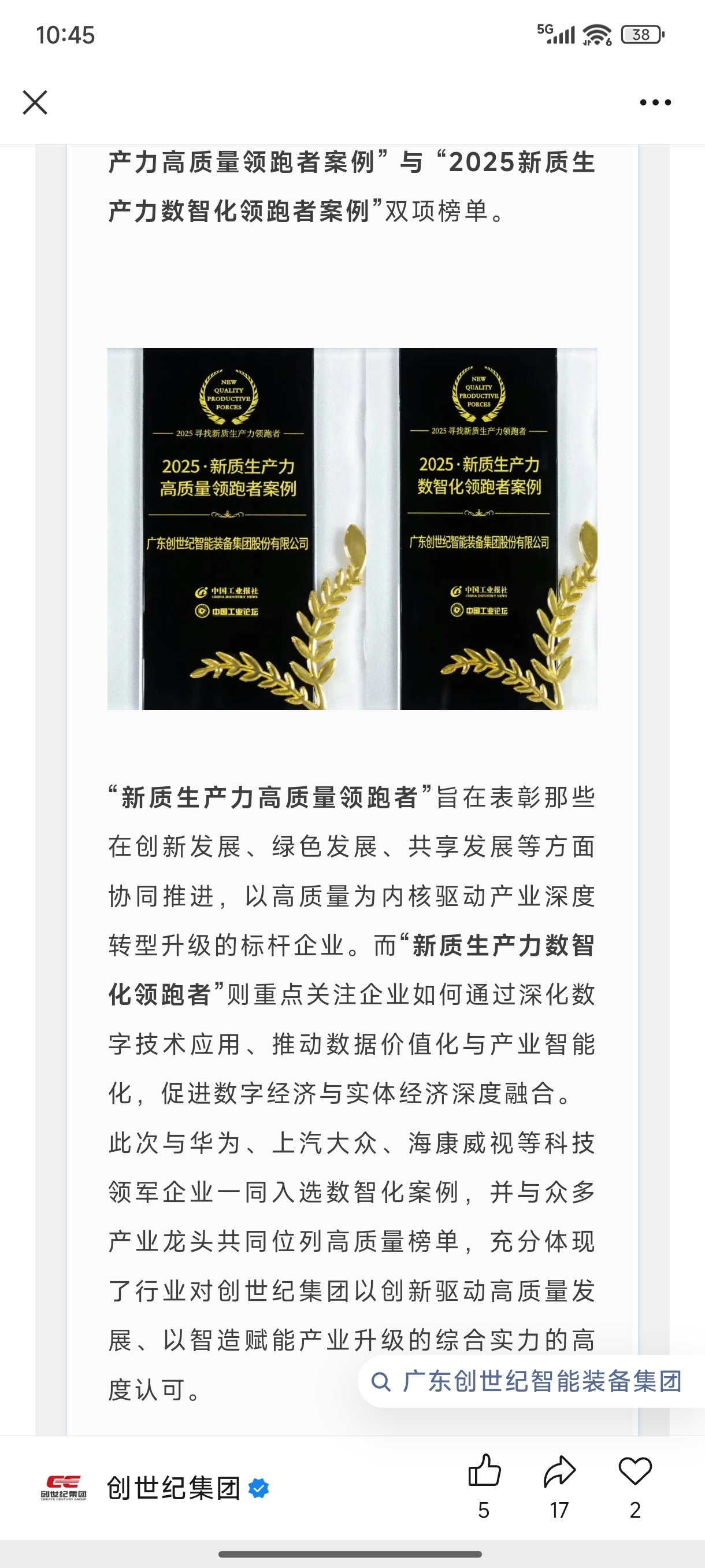 双项入选!创世纪集团获评2025新质生产力“高质量”与“数智化”领跑者