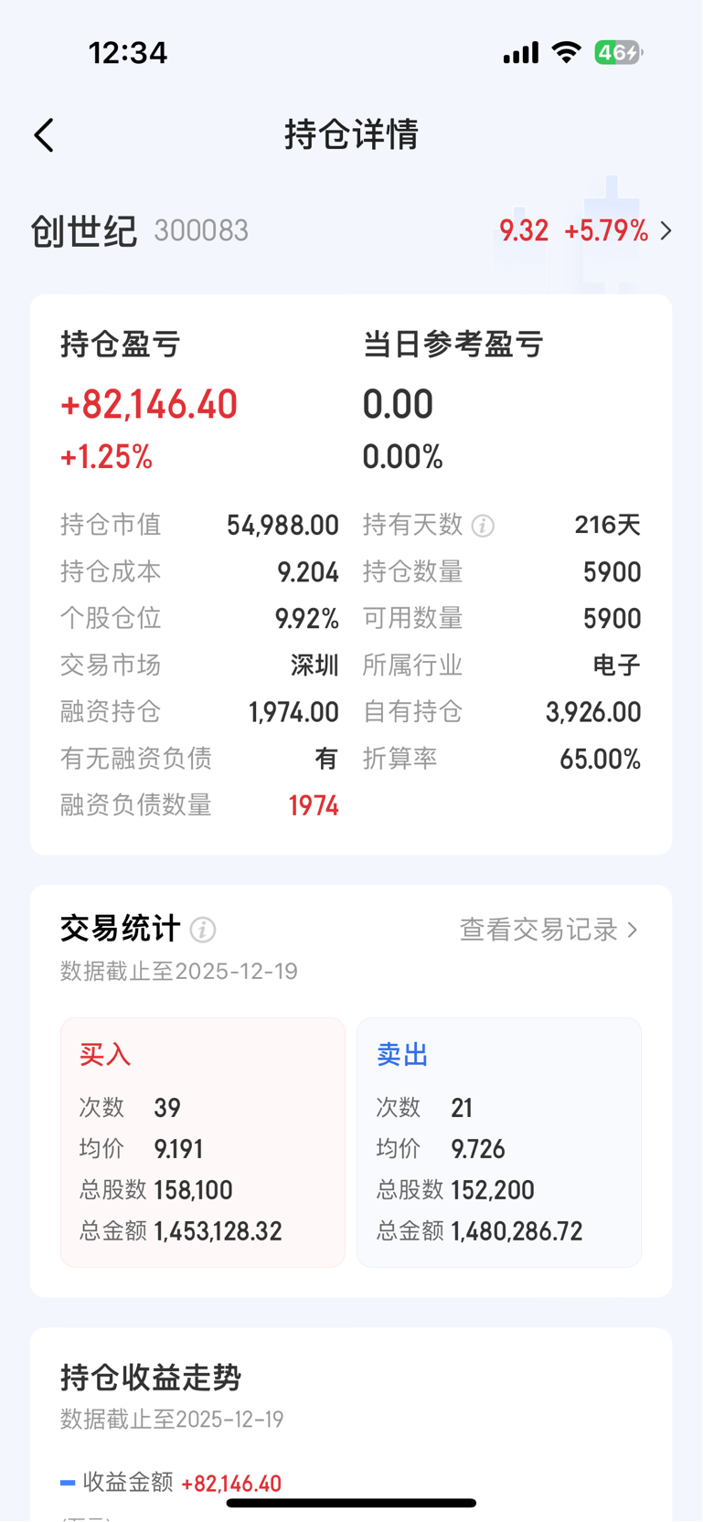 $创世纪(SZ300083)$ 只有5万多仓位了 感觉周一还要大涨,别涨啊下来让我再买点