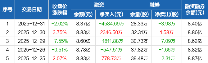 创世纪:融资净偿还4584.69万元,融资余额8.37亿元(12-31)