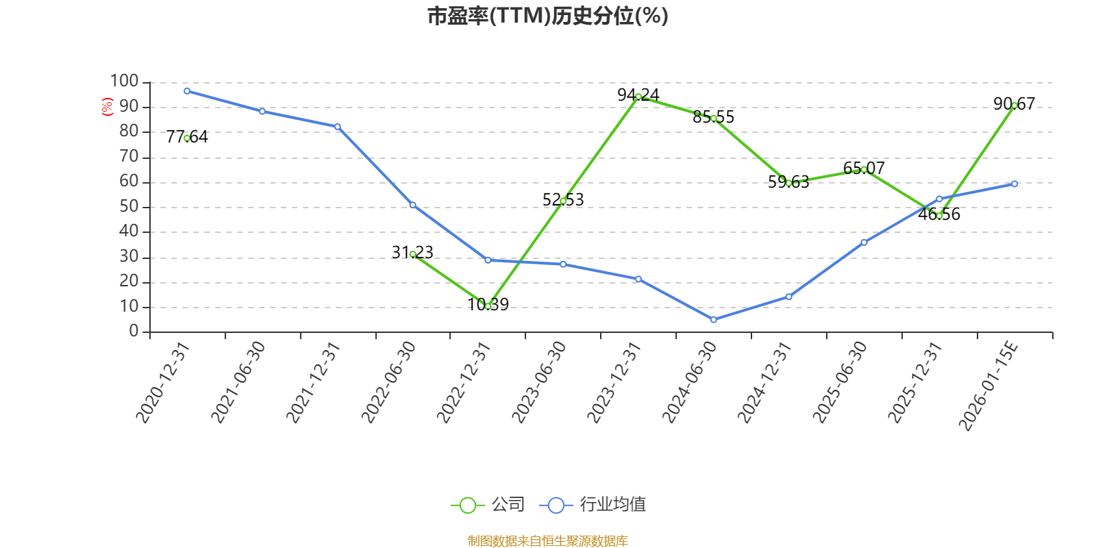 以本次披露业绩预告均值计算,公司近年市盈率(TTM)图如下所示: