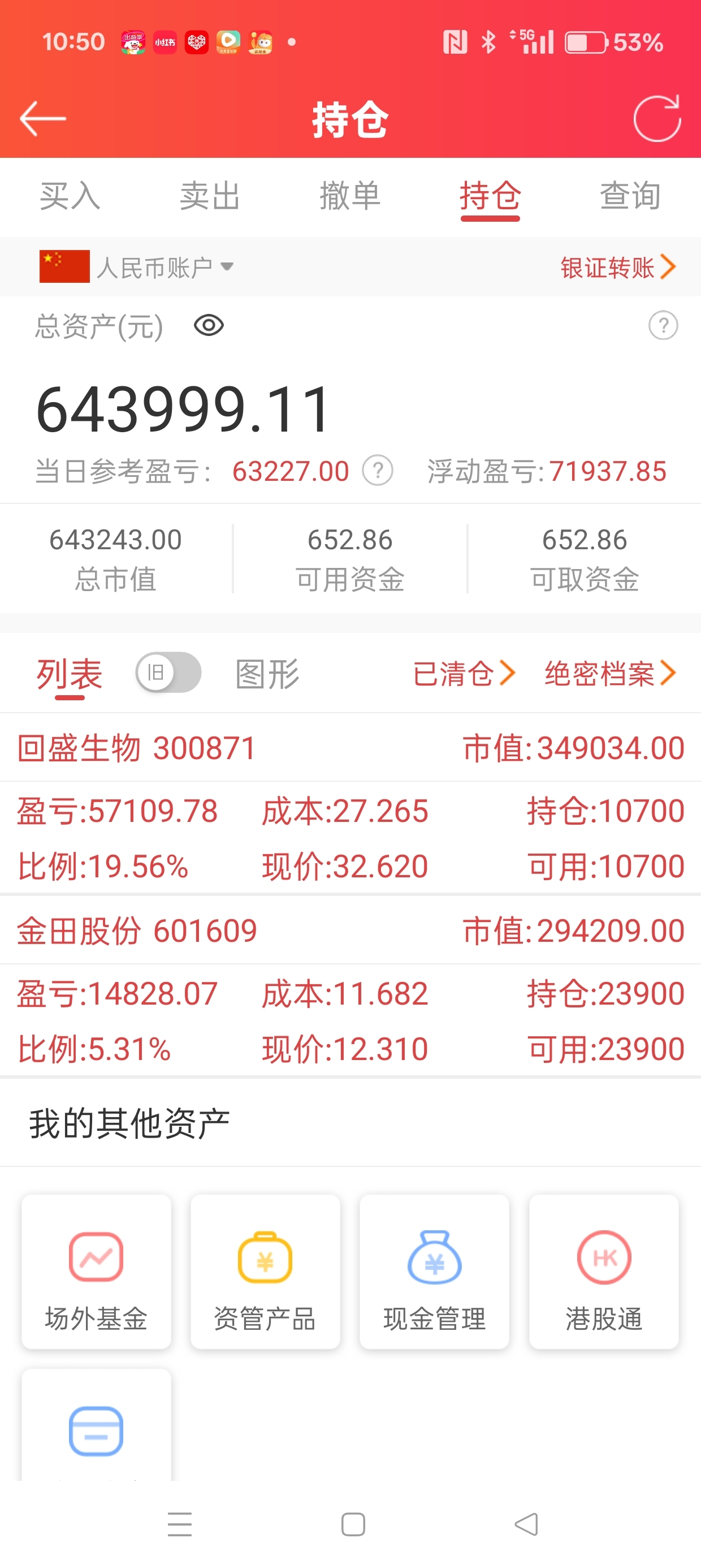 昨天9.79元全部清仓买了回盛生物,和金田股份