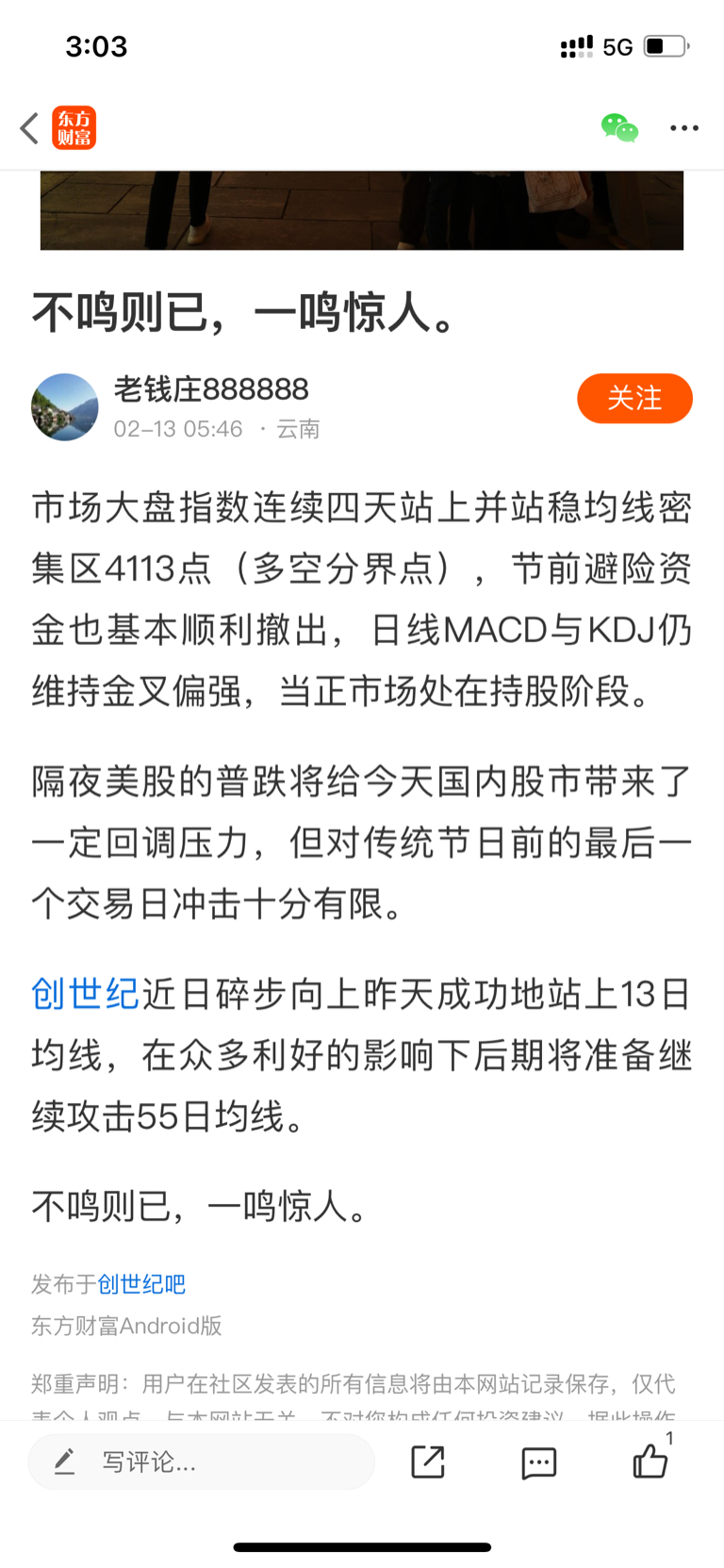 温馨提示: 1.根据《证券法》规定,禁止编造、传播虚假信息或者误导性信息,扰乱证券市场;2.用户在本社区发表的所有资料、言论等仅代表个人观点,与本网站立场无关,不对您构成任何投资建议。用户应基于自己的独立判断,自行决定证券投资并承担相应风险。《东方财富社区管理规定》