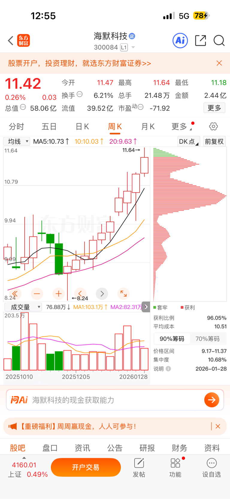 $海默科技(SZ300084)$ 为什么周线都是往上走的?这是什么意思呢?主力吸筹吗?还是等风来?