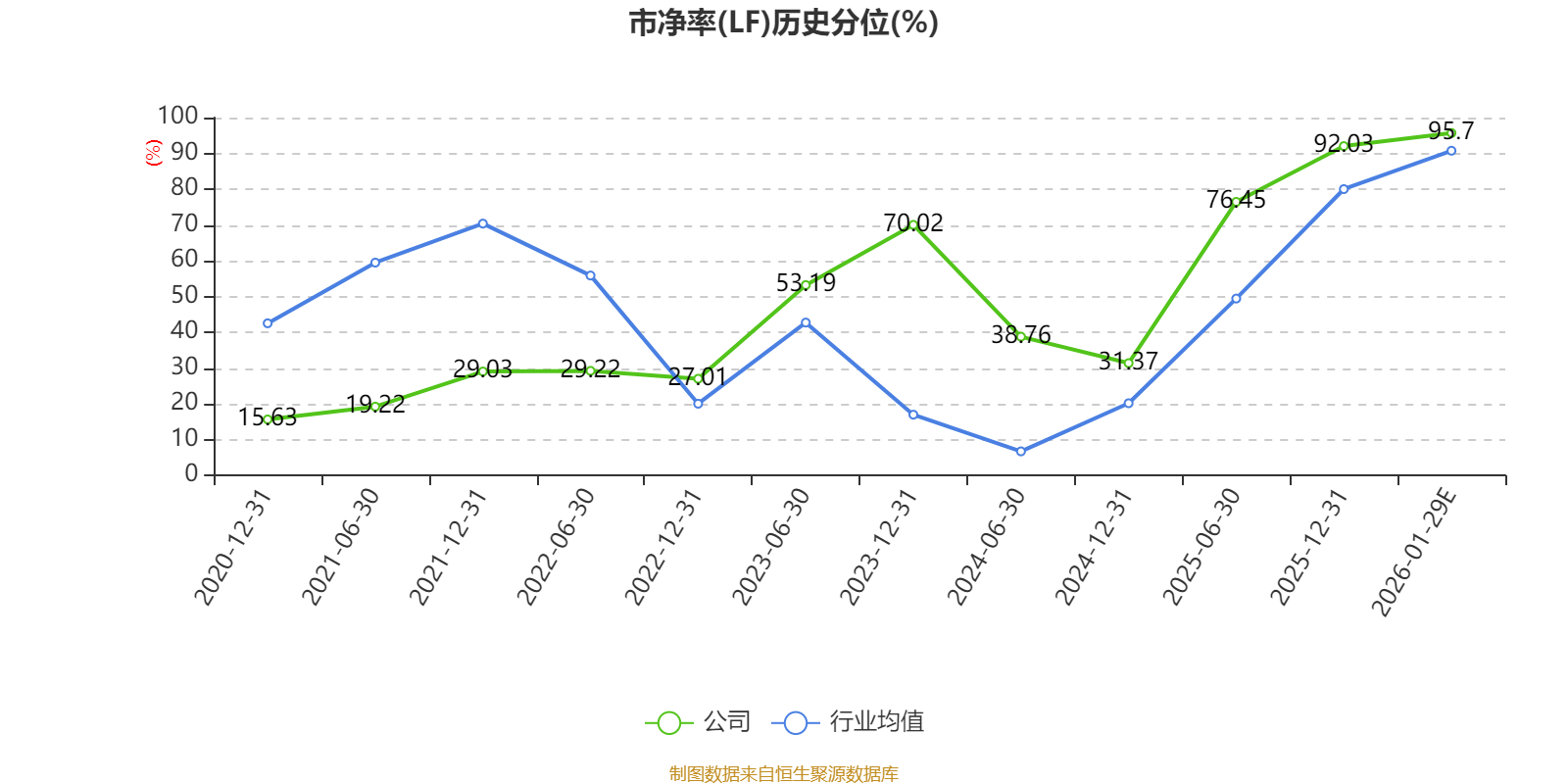 市盈率、市净率为负时,不显示当期分位数,会导致折线图中断。